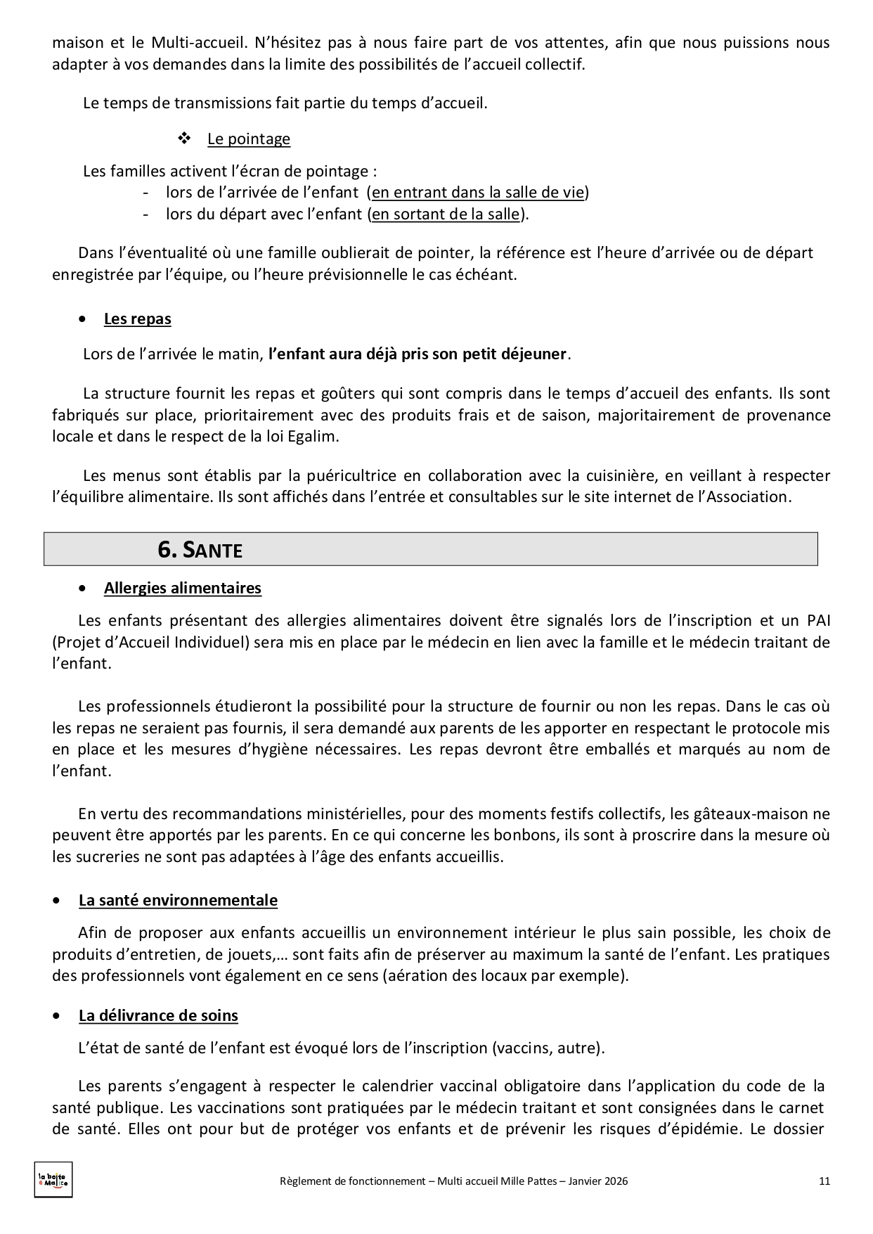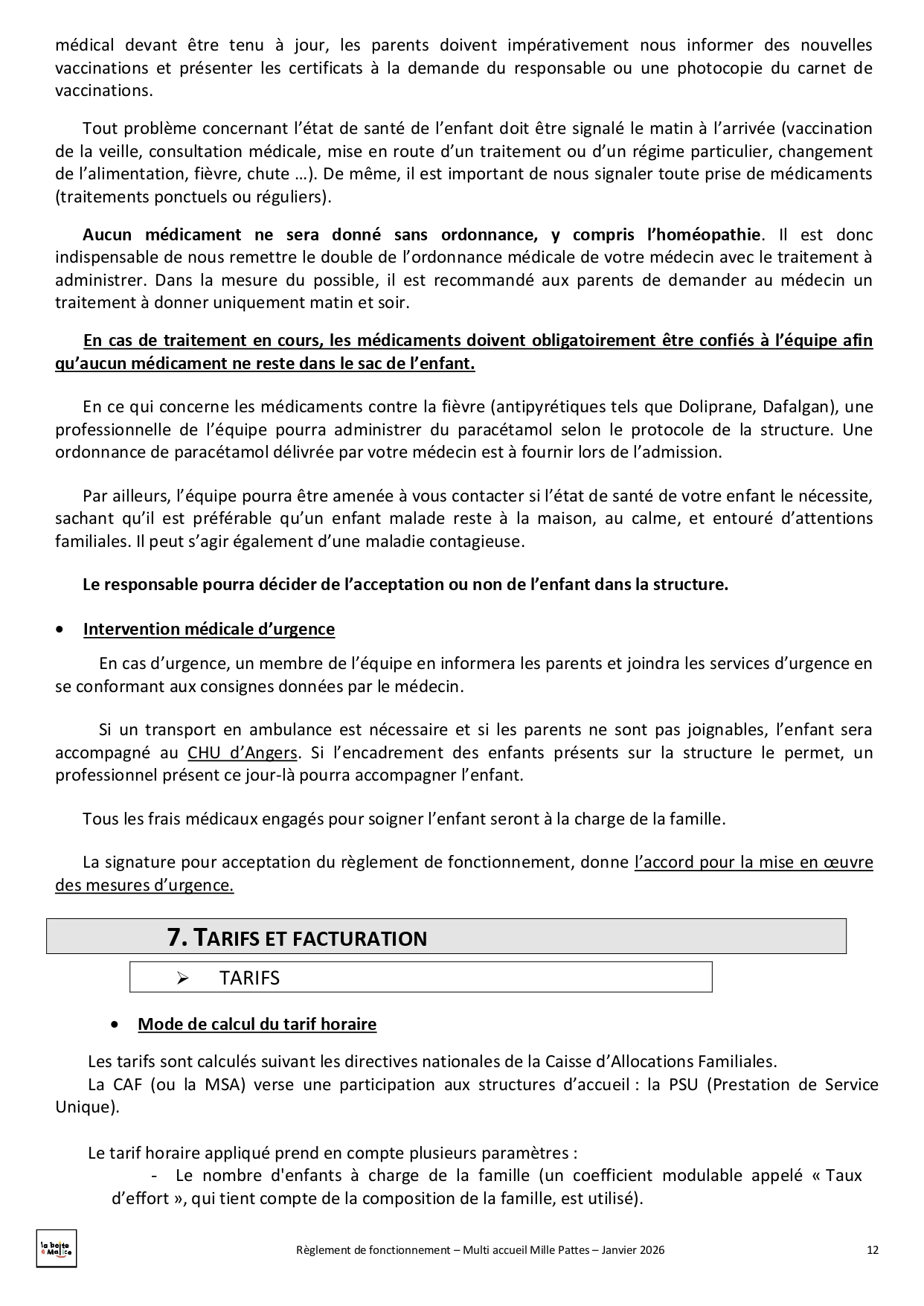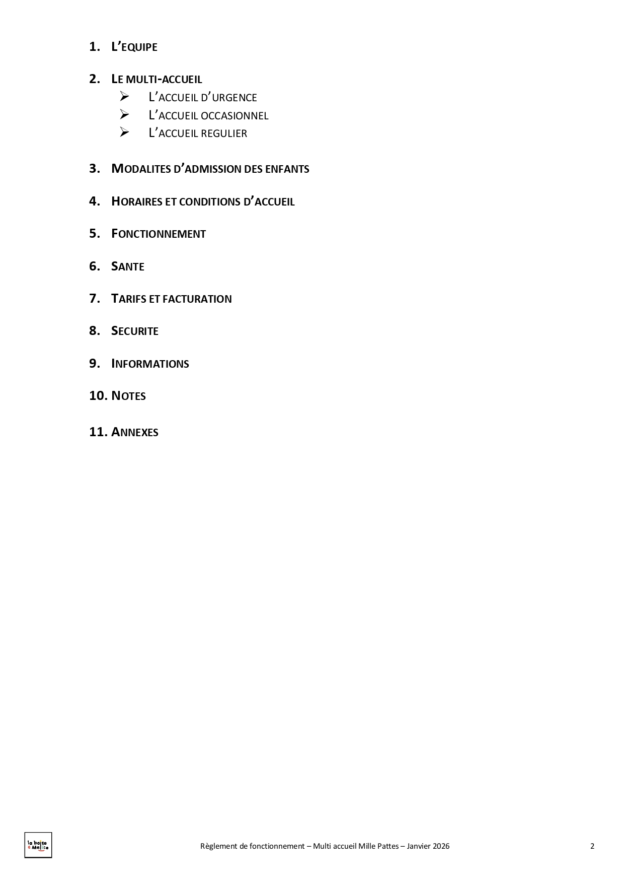 Situé à Saint-Jean-de-Linières, Mille-pattes est un multi-accueil destiné aux enfants de 2 mois ½ à 4 ans. Ils peuvent être accueillis de façon régulière avec 18 places en crèche ou de façon occasionnelle avec 6 places en halte garderie. Au travers de ce mode de garde nous souhaitons répondre au mieux aux besoins des familles ainsi qu'à ceux des enfants : lieu d'éveil, de découvertes, de partage et d'échange, d'ouverture vers les autres.