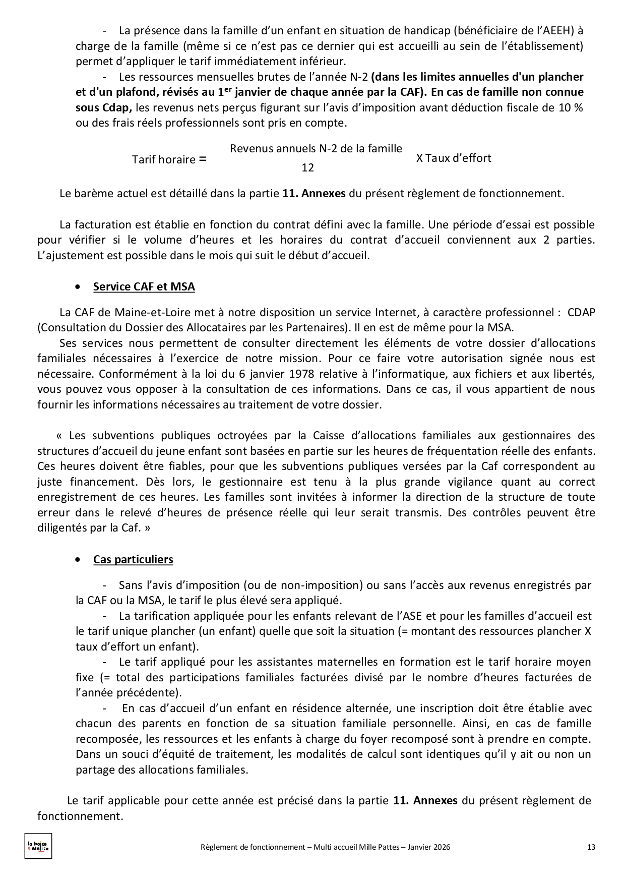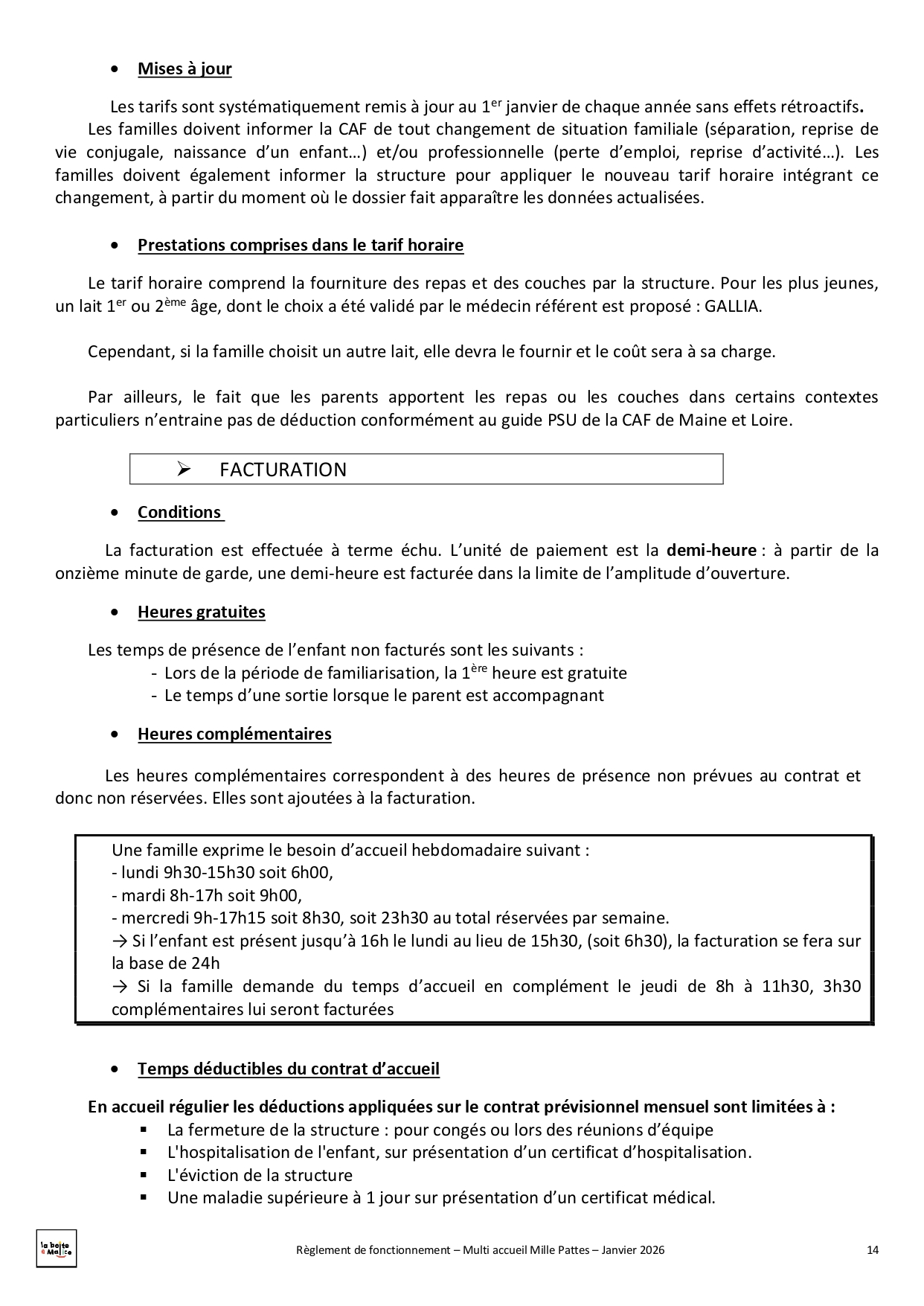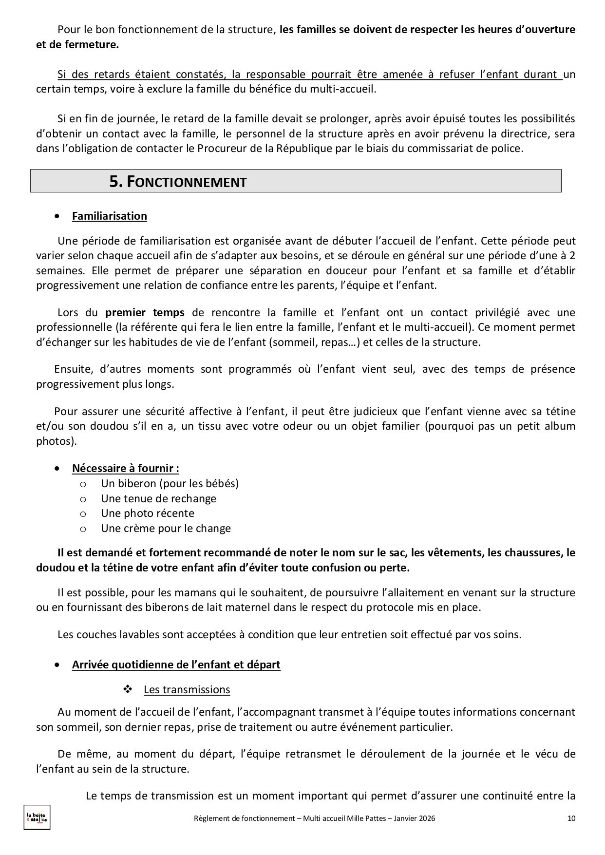 Situé à Saint-Jean-de-Linières, Mille-pattes est un multi-accueil destiné aux enfants de 2 mois ½ à 4 ans. Ils peuvent être accueillis de façon régulière avec 18 places en crèche ou de façon occasionnelle avec 6 places en halte garderie. Au travers de ce mode de garde nous souhaitons répondre au mieux aux besoins des familles ainsi qu'à ceux des enfants : lieu d'éveil, de découvertes, de partage et d'échange, d'ouverture vers les autres.
