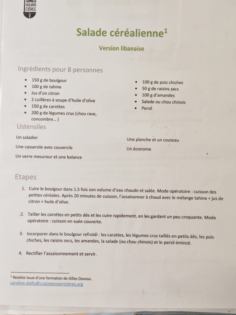 Dans le cadre du projet en lien avec l'alimentation