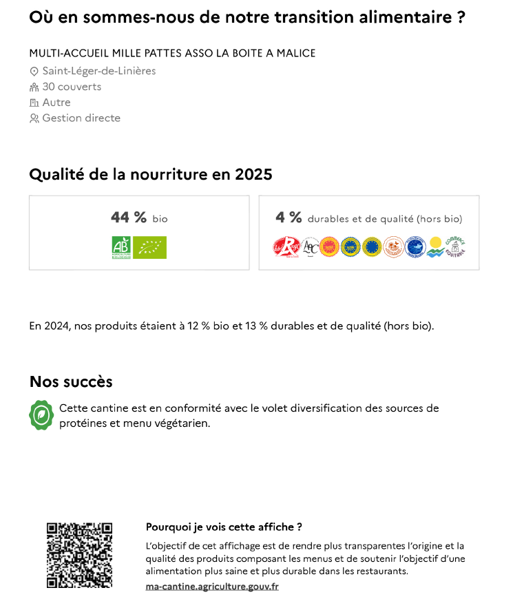 Le projet annuel de la Boîte à Malice porte sur l'alimentation du jeune enfant.